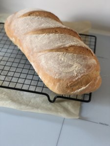 Ez a kenyér minden kenyerek királynője, az alfa, a forrás ahonnan kiindulva tudunk továbbmenni és megalkotni bonyolultabb kenyereket is! Ez a kenyér veszélyesen finom. Elvileg várni kéne a felvágással amíg kihűl, de ember legyen a talpán az, aki meg bírja állni, hogy ne kenjen meg vajjal egy meleg szeletet és szórja meg sóval..elolvad a szánkban és az íze…. na az felülmúlhatatlan!