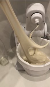 (elnézést a rossz képminőségért – videómból fotóztam, hogy lássátok mennyire kell tudnia nyúlni a tésztának anélkül,hogy szakadna)